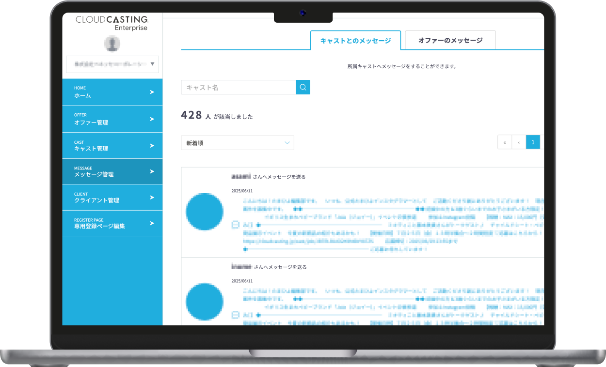 エンタープライズ版では、所属タレントの一括管理、タグ付けやグルーピング、専用管理画面からの案件応募・メッセージ送信、契約や支払い管理など、事務所様の運営を効率化する機能を幅広くご利用いただけます。